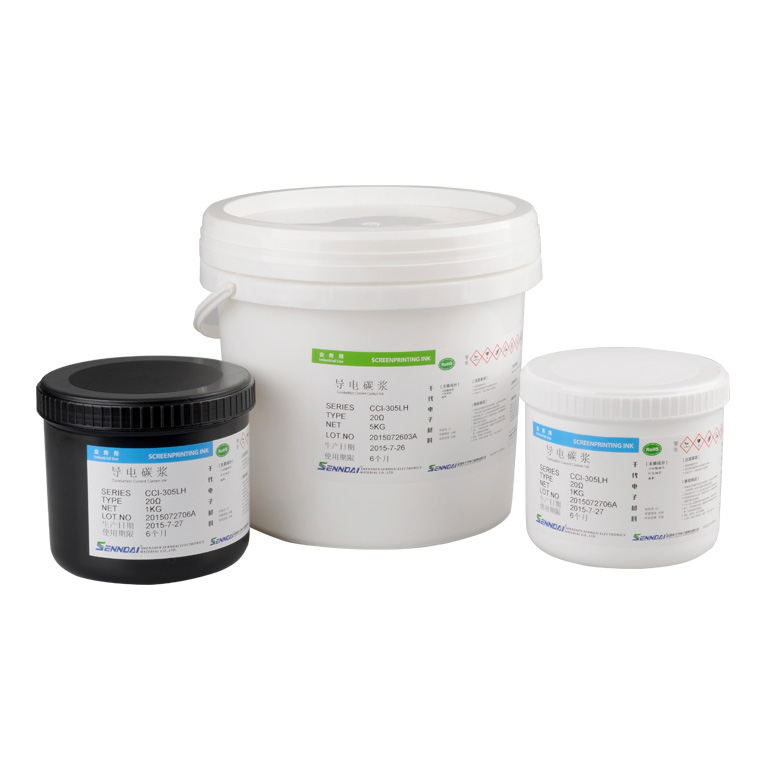 CCI-305LH型导电碳浆是千代电子材料有限公司生产的一种低电阻碳浆。它是由特制树脂及精制碳粉精研而成。适用于丝网印刷,主要应用于单双面线路板(PCB)中的印刷线路、贯通孔、按键及架桥。在FR2、FR4、铜膜、玻璃、陶瓷及镀镍涂层表面有良好印刷性、耐磨性、耐溶剂性、耐高温性及高的硬度和极强的附着力。